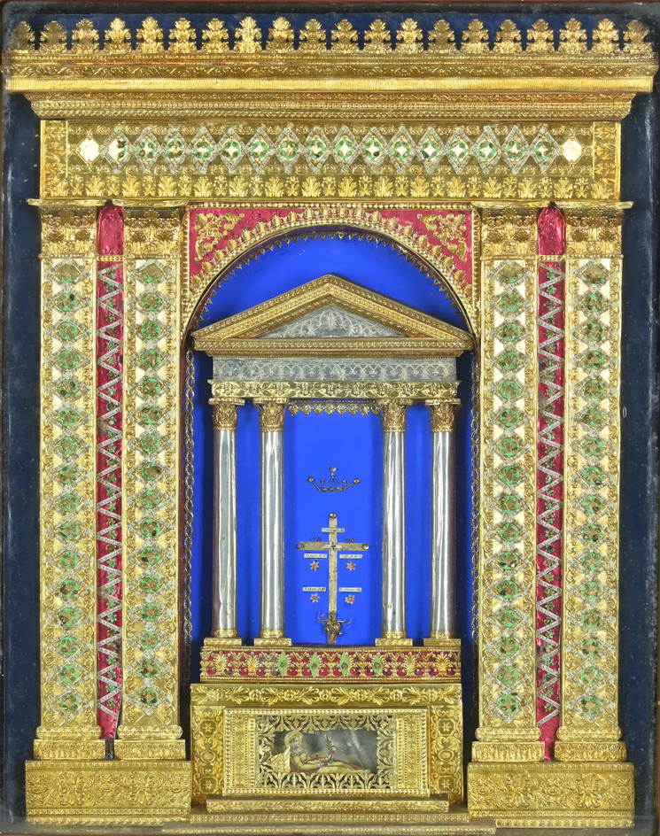 V. Romans (?), autel baroque, centre d’un cadre reliquaire, papier roulés, début 18e siècle, M.V.